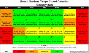 Busch Gardens Tampa – Crowd Calendar – February 2026 – 001